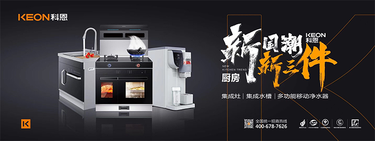 廚房新國潮科恩新三件,科恩集成灶、集成水槽、集成式凈水器重塑廚房格局,以烹、洗、飲為中心,集成智慧、延伸廚房、解放雙手、節省空間,打造樂趣、便捷、健康的廚房新生活。