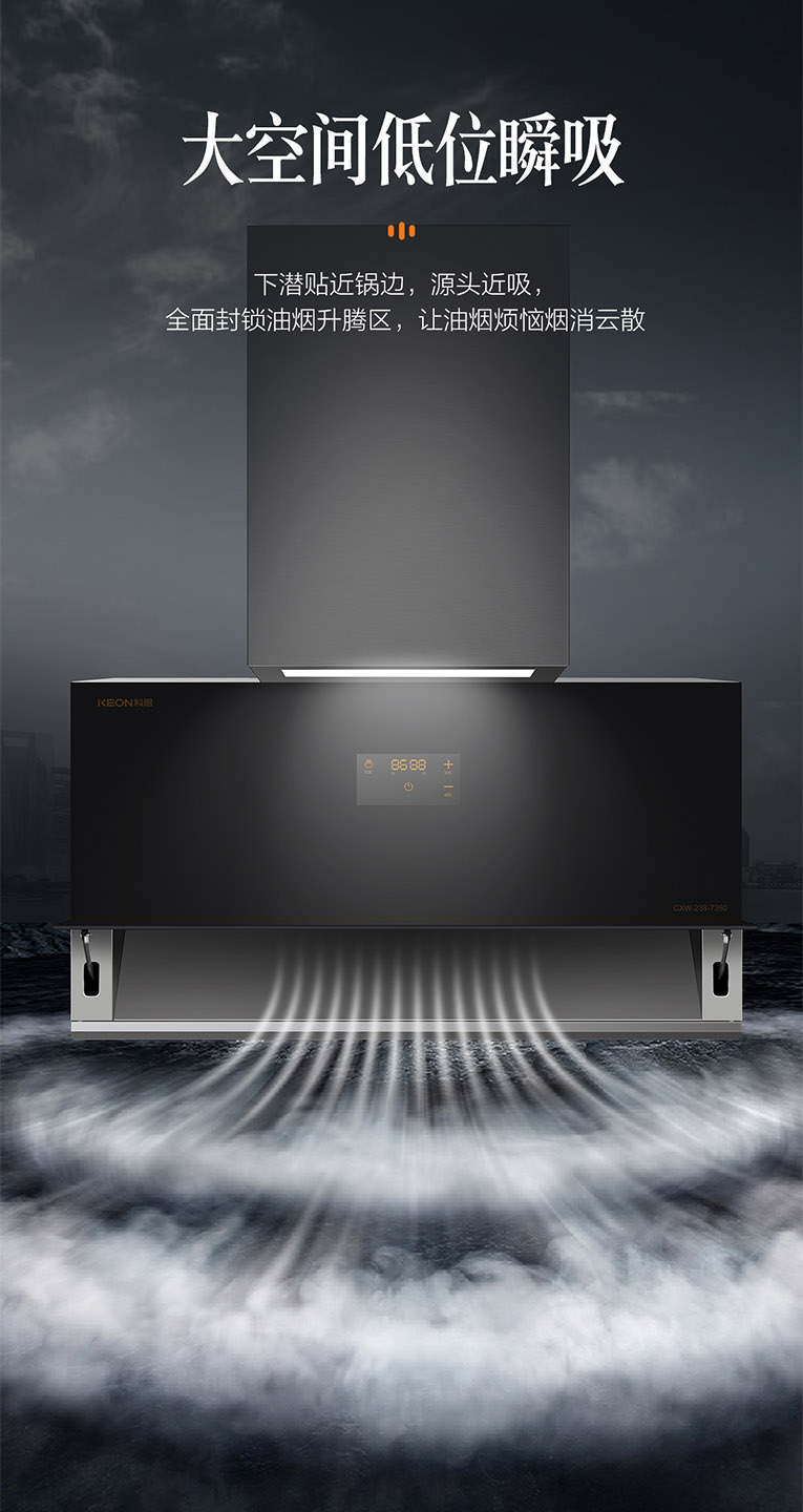 集成灶十大品牌、廚電行業(yè)十大品牌科恩新一代7350變頻大吸力煙機,變頻新科技,重新定義大吸力,能針對復(fù)雜的烹飪環(huán)境、多變的公共煙道風(fēng)阻,19.5±10%大風(fēng)量,800Pa大風(fēng)壓,能夠快速突破風(fēng)壓極限,遇強則強,八檔風(fēng)速迅速調(diào)節(jié),達到最佳抽油煙機效果,而當(dāng)煙道內(nèi)壓力較小時,煙機則自動調(diào)節(jié)轉(zhuǎn)速風(fēng)壓,保持恒定大吸力,確保油煙不逃逸、不倒灌,能有效解決油煙跑煙問題。