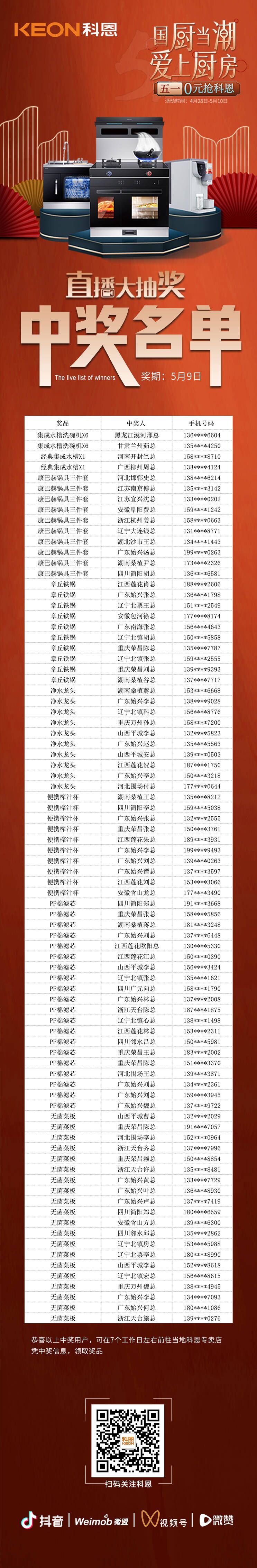 國廚當(dāng)潮,愛上廚房,0元搶科恩直播大抽獎(jiǎng)中獎(jiǎng)名單公布,快來看看有你嗎?