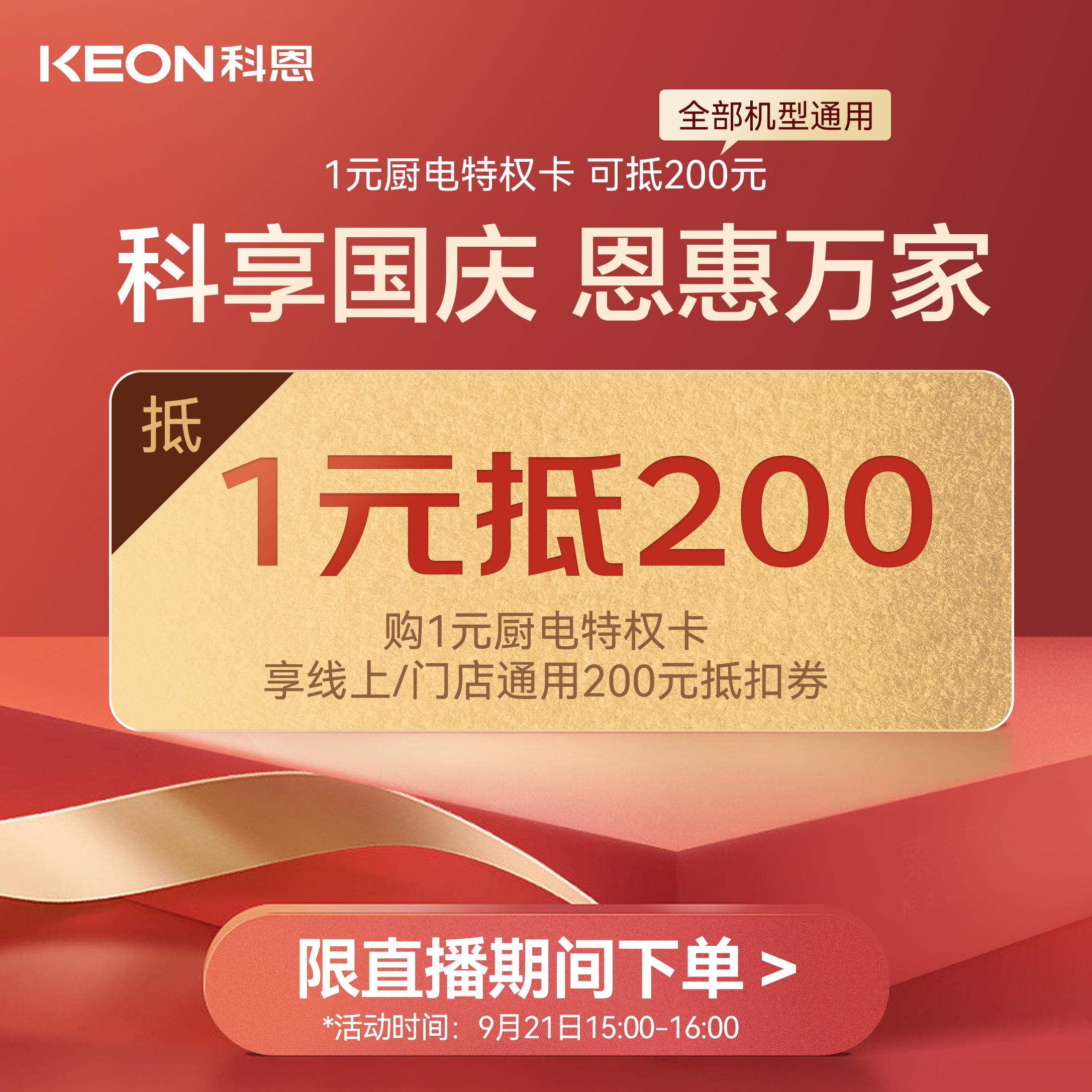 購(gòu)1元廚電特權(quán)卡,享線上/門店通用200元抵扣券