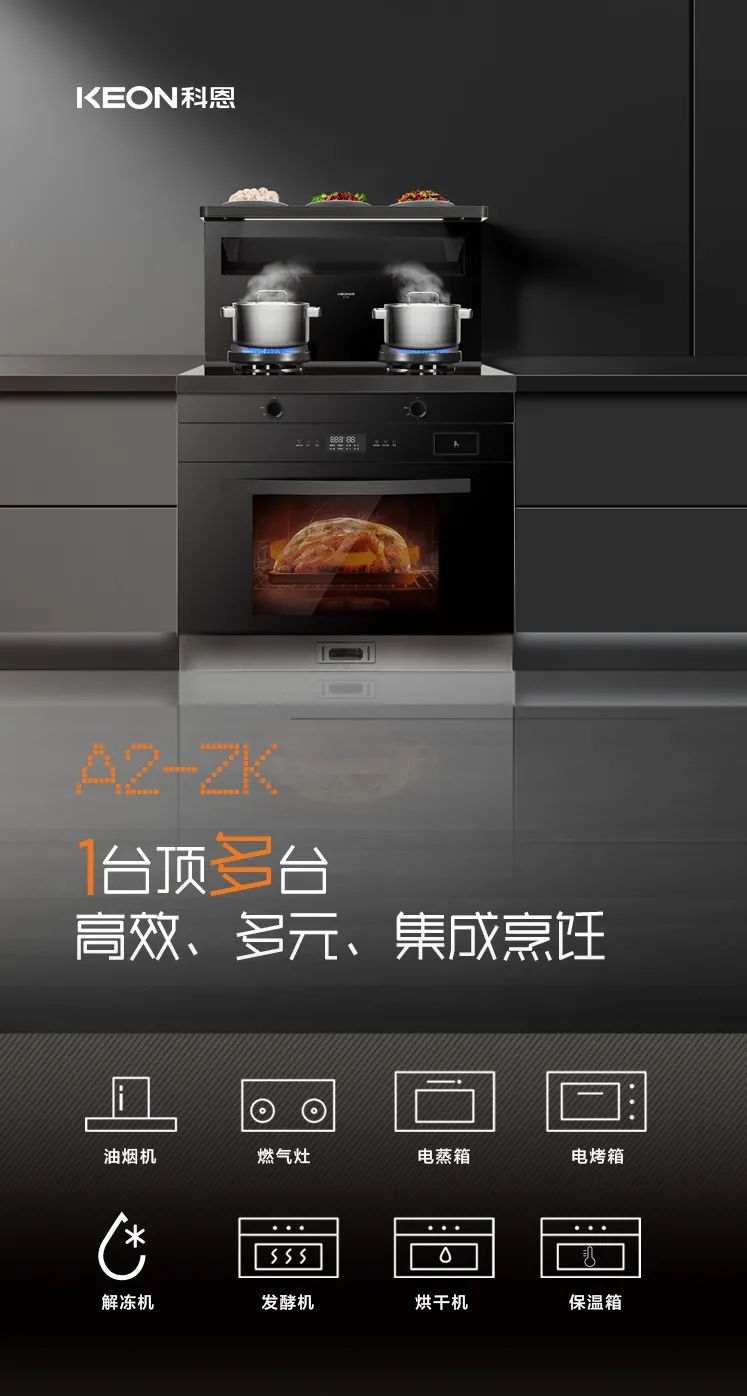 一平方米的魔法!科恩A2集成灶是煙灶,是灶具,更是蒸烤箱!