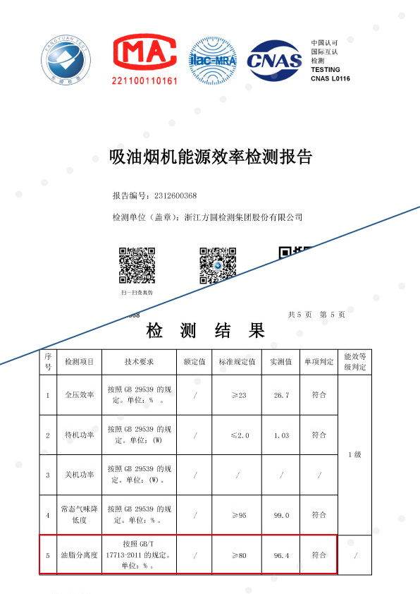 國標之上,油煙分離達到96%