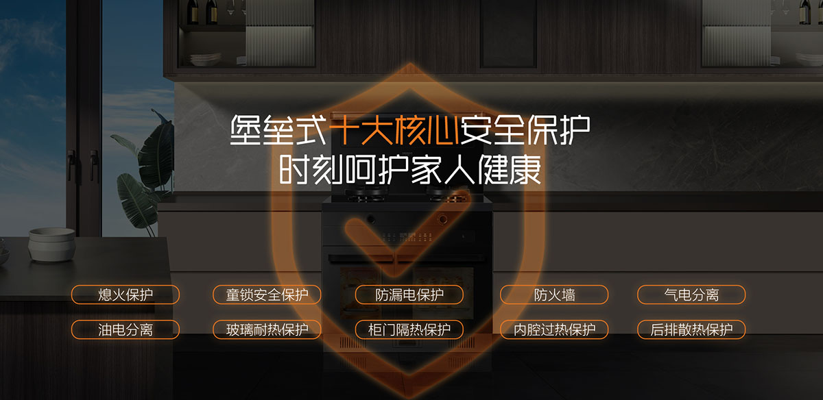 堡壘式十大核心安全保護(hù),時(shí)刻呵護(hù)家人健康(熄火保護(hù)、童鎖安全保護(hù)、防漏電保護(hù)、防火墻、氣電分離、油電分離、玻璃耐熱保護(hù)、柜門隔熱保護(hù)、內(nèi)腔過熱保護(hù) 、后排散熱保護(hù))