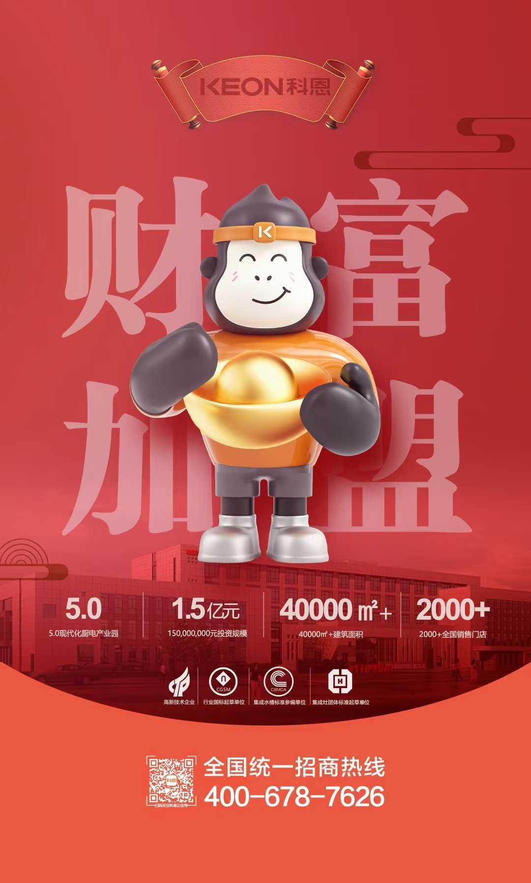 乘風破浪,灶富科恩。2025科恩秋季財富選商會火熱進行中!金秋招商搶占先機,財富加盟共贏未來;專利科技鑄就品質,全品類布局領跑行業(yè)。舊廚煥新掘金存量市場,招商政策重磅加碼,財富之約即刻啟程!