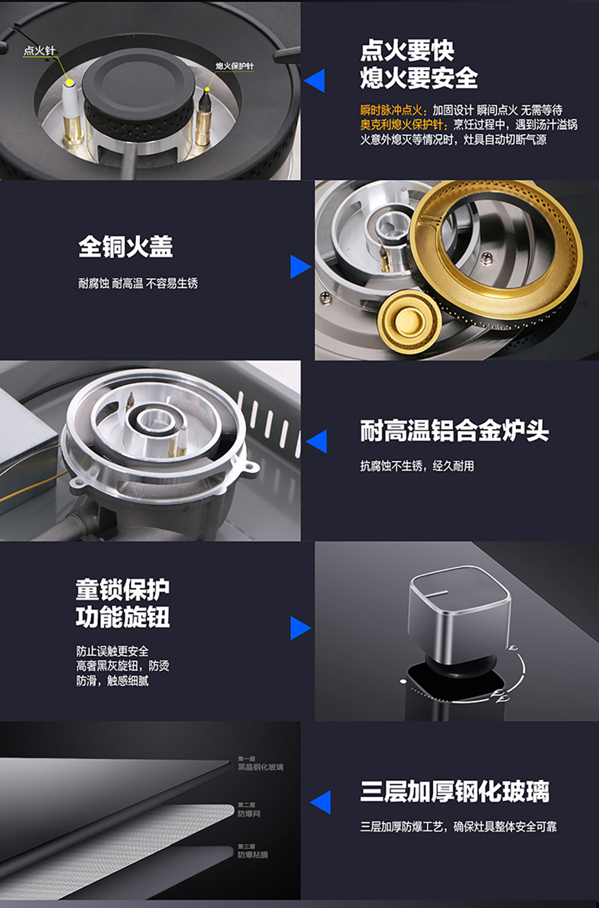 達克羅防腐防銹爐頭,純銅火蓋,熱效率達63%。