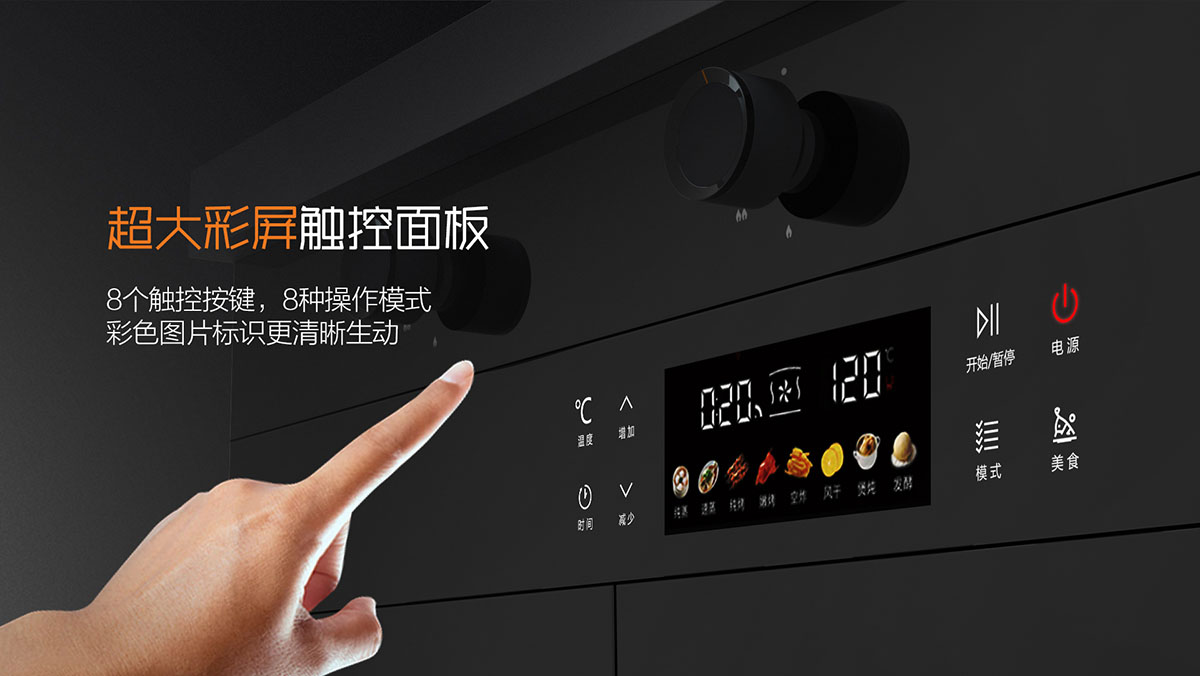• 八大模式四大輔助功能,73L大空量,蒸烤炸燉一體,智能廚房一步到位