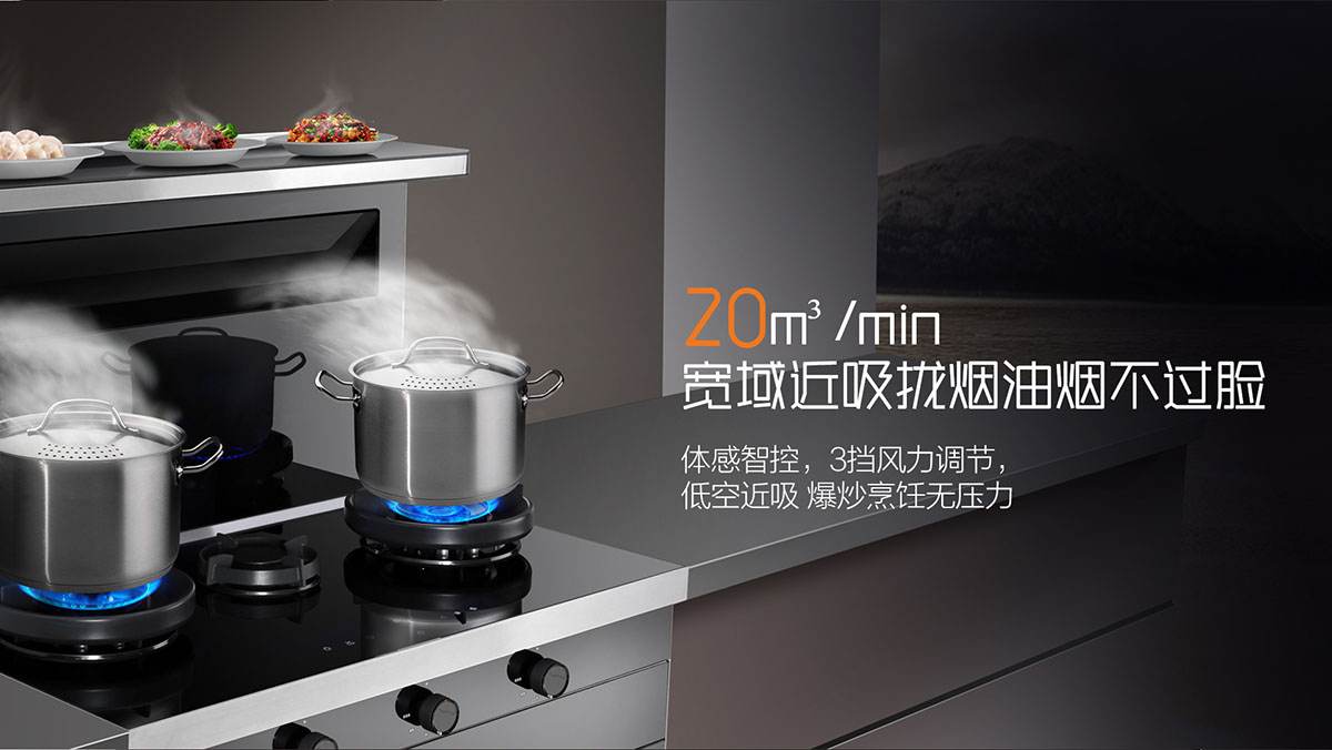 • 21.5m3/min寬域近吸攏煙,油煙不過臉,烹飪更隨心