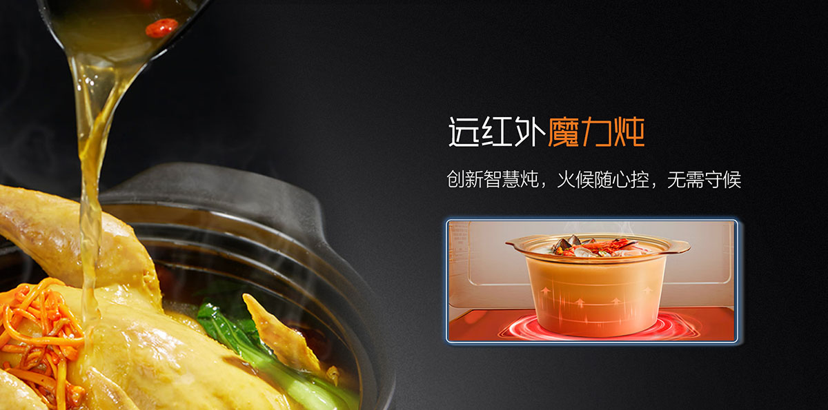 • 易潔微晶玻璃加熱盤,創新遠紅外魔力燉,火候隨心控,無需守候