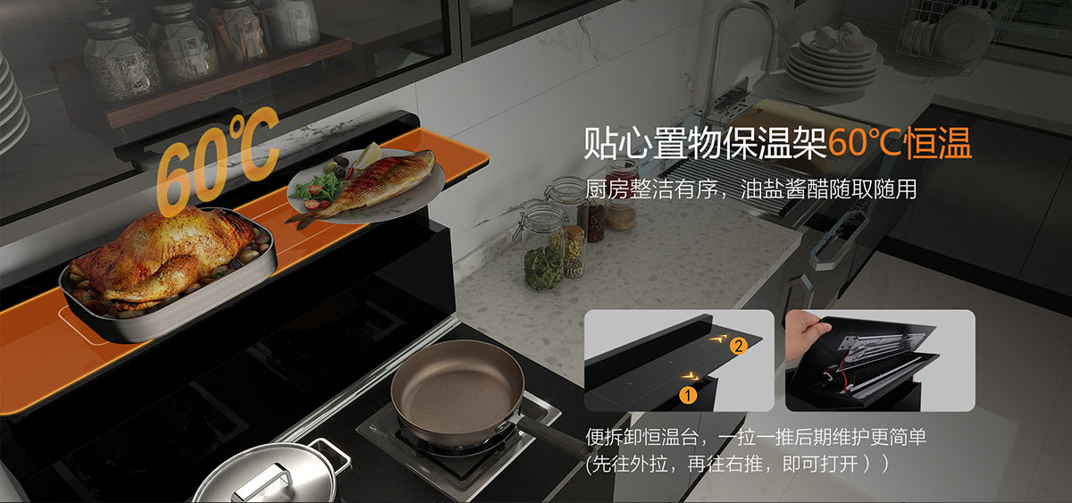 雙重冷凝網板,高效油煙分離,打理方便自如