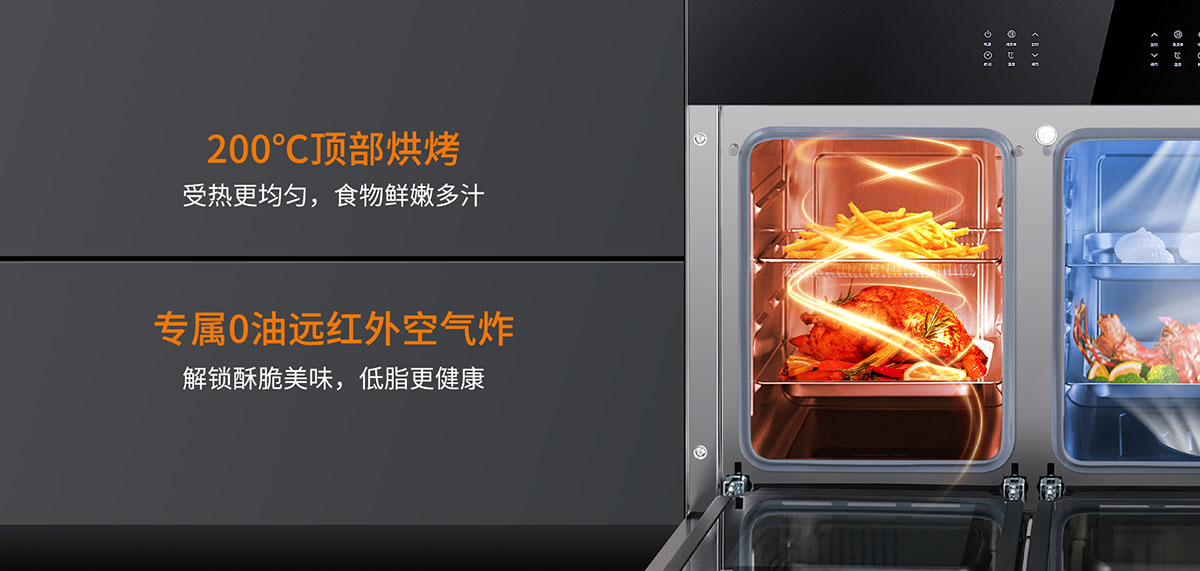 200℃頂部烘烤,受熱更均勻,食物鮮嫩多汁
