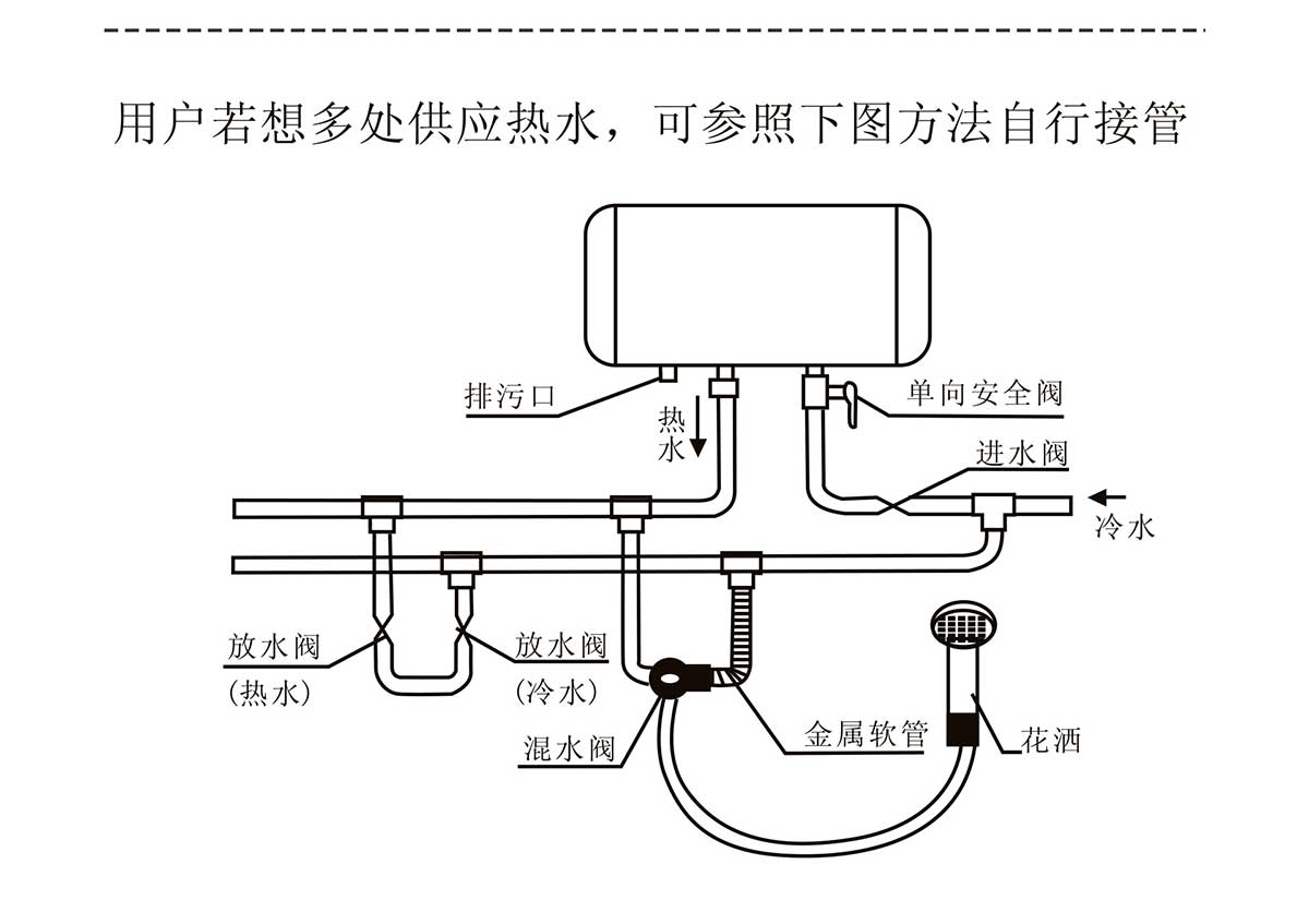 適應水壓范圍廣,熱水容量大,可同時供給多個用水點用水