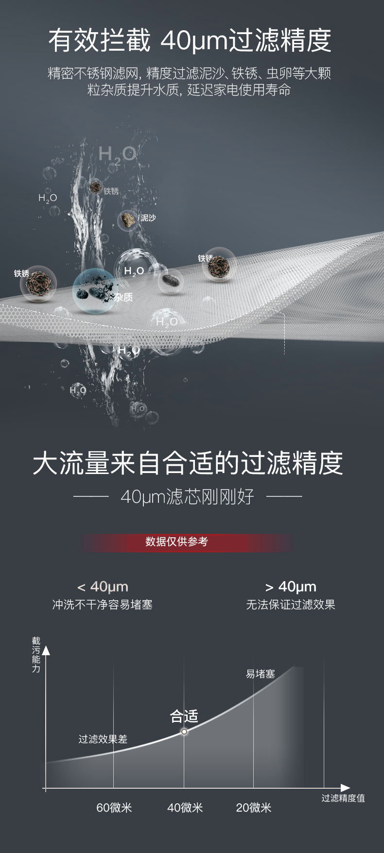 - 40μm過濾精度,精密不銹鋼濾網,提升水質