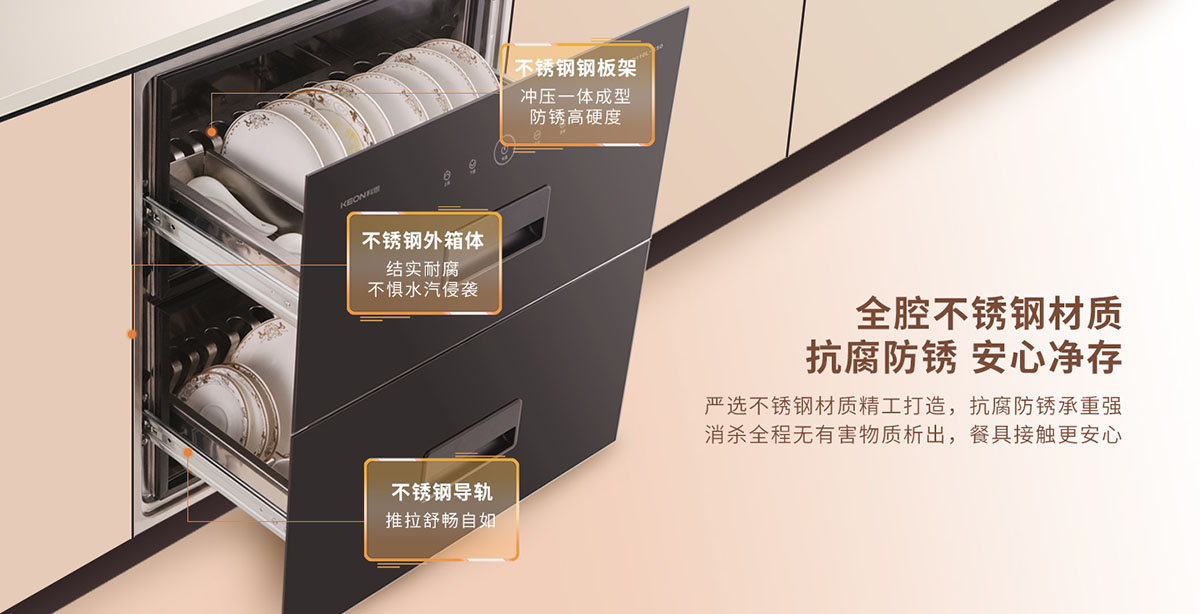 • 不銹鋼分區結構,實現餐具科學分類存放