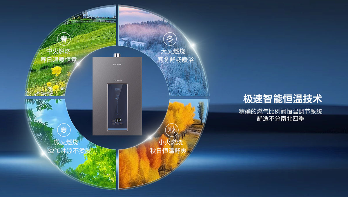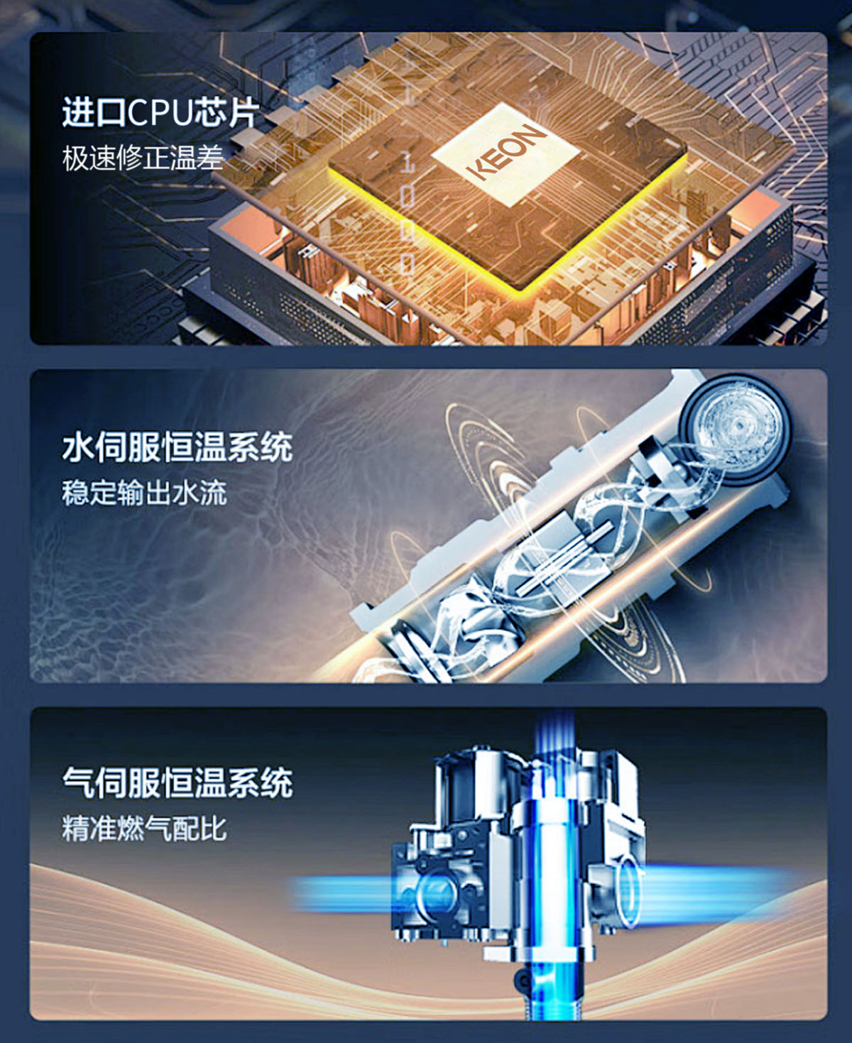 極速智能恒溫技術,精確的燃氣比例閥恒溫調節系統。