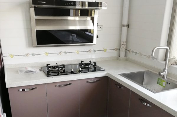 科恩福建經銷商提供的D17集成灶和不銹鋼水槽廚房實景