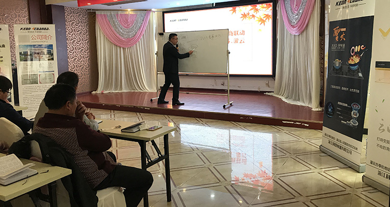 在會(huì)議現(xiàn)場(chǎng),科恩電器育商學(xué)院王校長(zhǎng)分析了整個(gè)廚電行業(yè)發(fā)展態(tài)勢(shì),闡述了江蘇市場(chǎng)的重要性,全面剖析了灌云的市場(chǎng)情況,鼓勵(lì)灌云廣大經(jīng)銷商緊跟公司步伐,聚勢(shì)合力共同在促銷,宣傳工作上綜合發(fā)力,并指明了未來(lái)工作重心和發(fā)展方向。并以公司多場(chǎng)終端促銷活動(dòng)作為引子旁征博引,用豐富的語(yǔ)言深刻形象介紹了產(chǎn)品包裝、品牌傳播、門店建設(shè)、渠道建設(shè)與整合營(yíng)銷等多項(xiàng)實(shí)戰(zhàn)技能,以幽默風(fēng)趣的語(yǔ)言,深入淺出的為在場(chǎng)各位經(jīng)銷商傳授了最深刻的經(jīng)驗(yàn)。